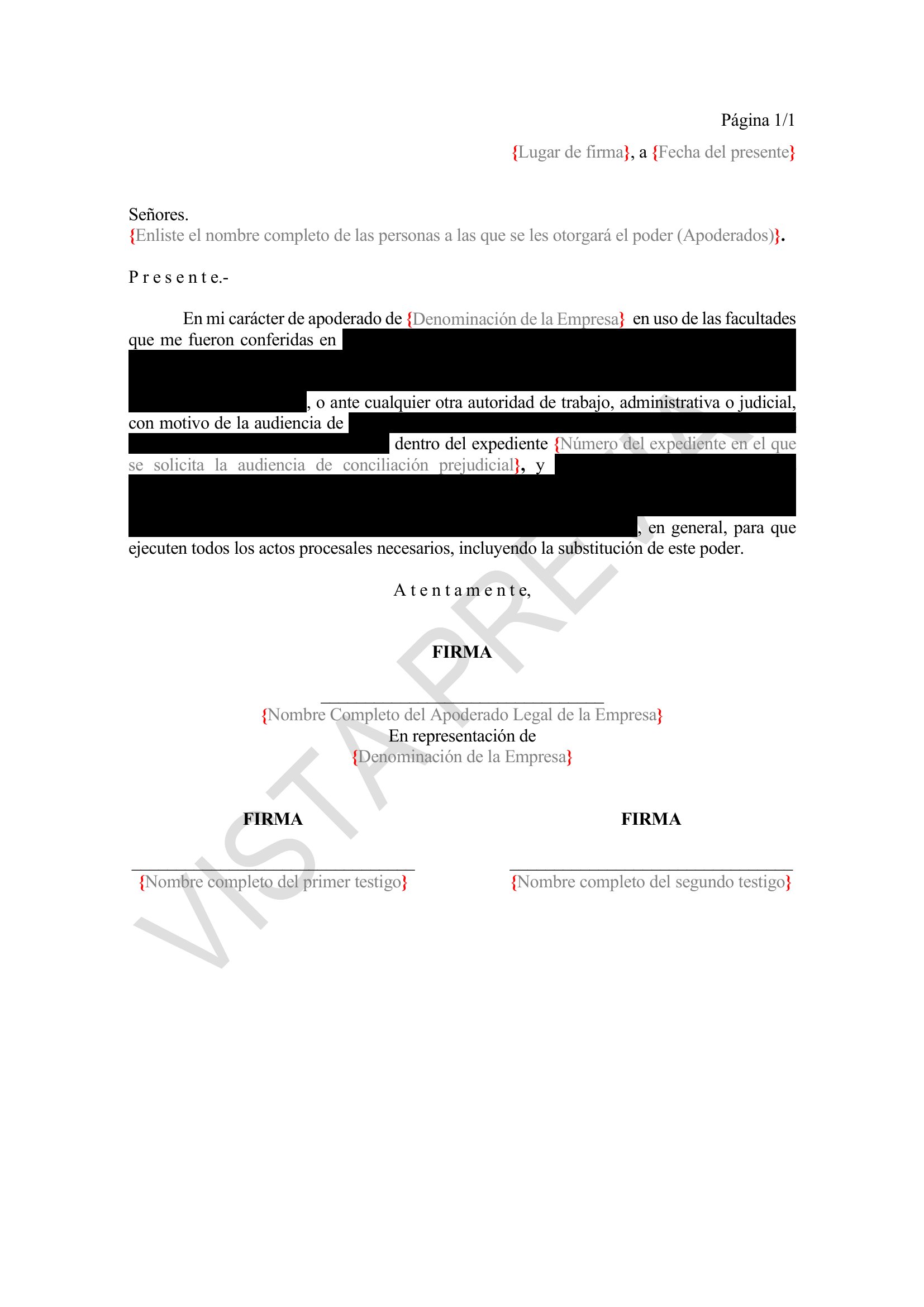 Es fundamental contar con una Carta Poder para Audiencia de Conciliación en situaciones en las que se necesite comparecer en una audiencia de conciliación en nombre de una persona moral, pero no se dispone de un poder directo de la misma. En estos casos, es necesario contar con una carta poder otorgada por el apoderado de la persona moral que tenga facultades para delegar su poder para Poder para Pleitos y Cobranzas y para Actos de Administración en materia laboral. La carta poder asegura que el representante delegado cuenta con la autorización adecuada para actuar en representación de la persona moral durante la audiencia.