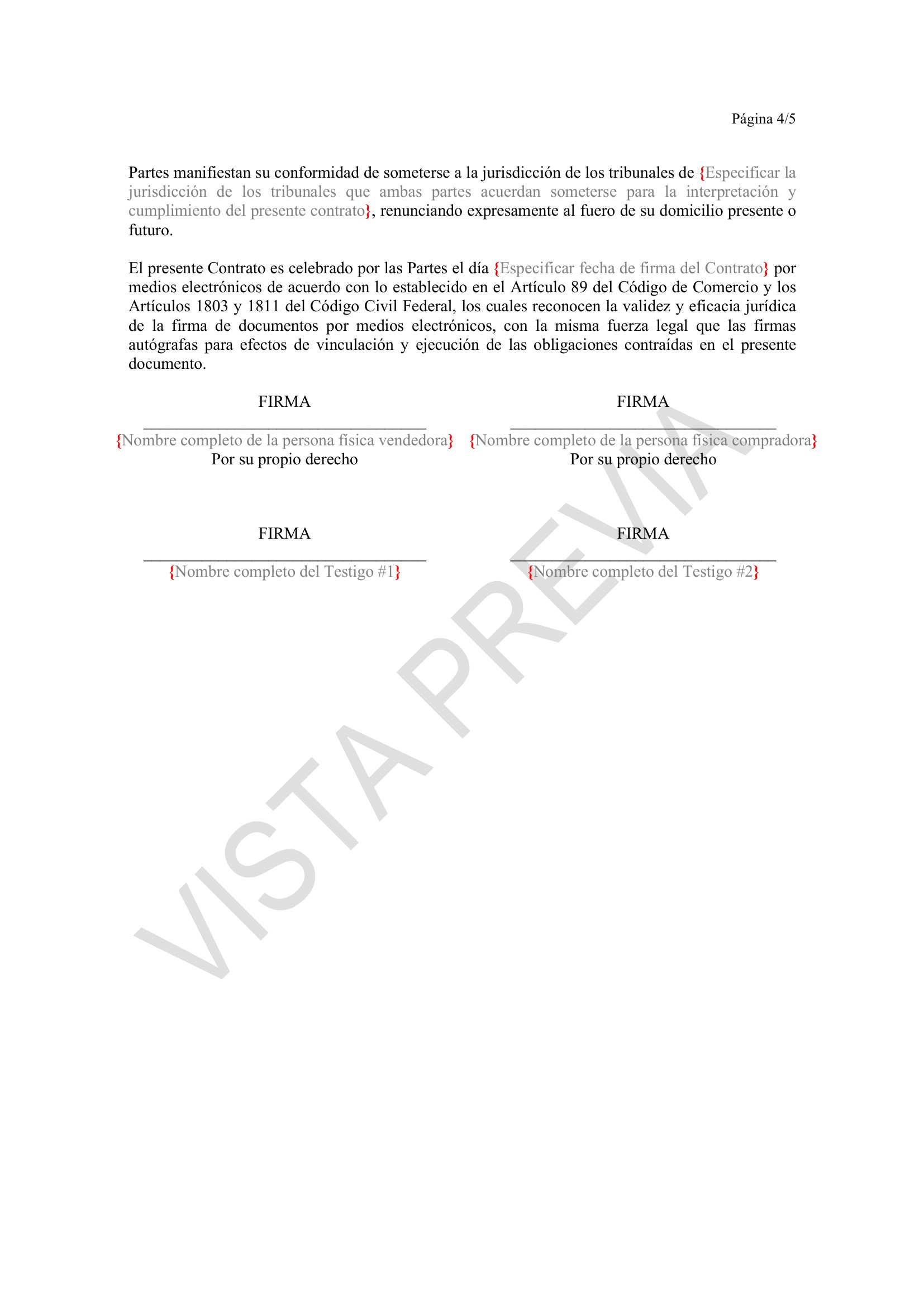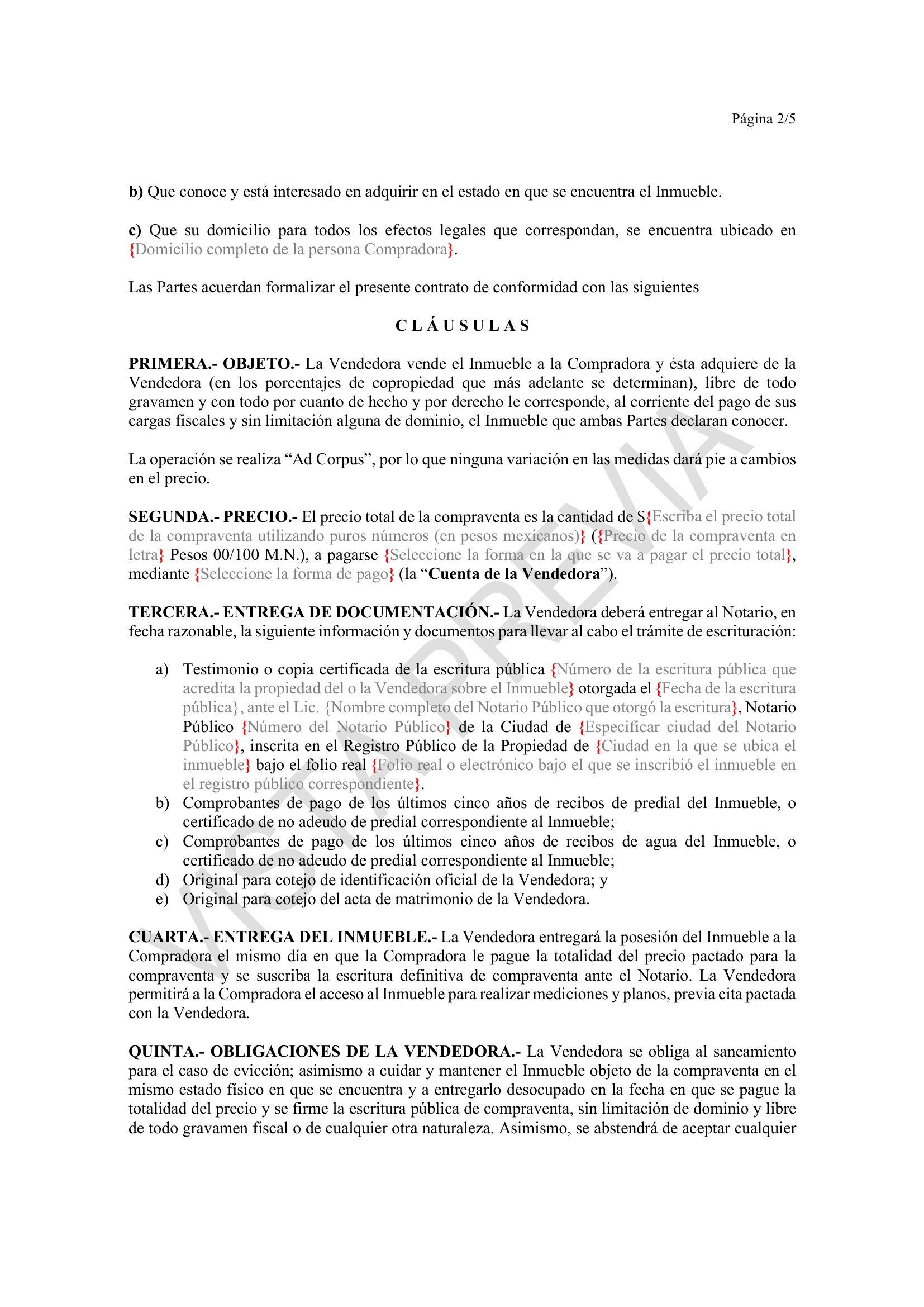• Especificar las condiciones de mantenimiento y las responsabilidades del comprador y del vendedor durante el periodo de compraventa.